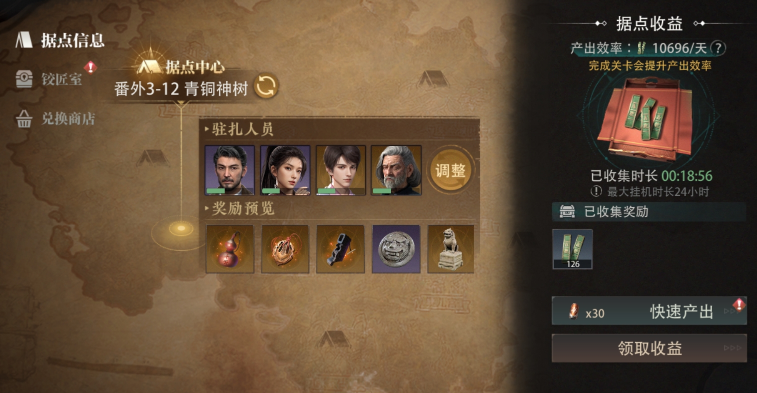 通关主线关卡后,对应古墓据点即被永久解锁。玩家可派遣伙伴驻守该据点,持续产出辟邪物、古玩、稀有材料等核心资源;后续仅需消耗少量体力即可启用“一键扫荡”功能,免去重复闯关流程,大幅提升养成效率。所有资源关卡均清晰标注产出类型与概率,杜绝误刷,助力精准规划培养路径。