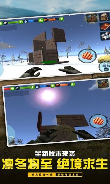 本作以极简主义美术风格构建沉浸式荒岛图景,通过空旷地景、低饱和色调与留白式叙事强化孤独感与原始张力。生存系统覆盖体温、饱食度、水分、精神值等多维健康参数,并支持动态采集、临时庇护所搭建、火源维持及简易工具锻造。地图采用程序化生成技术,在固定岛屿框架内随机分布隐秘洞穴、废弃补给箱及稀有矿物矿脉,提升每次开局的新鲜感与探索深度。