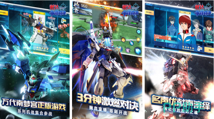 本作深度还原《机动战士高达》世界观,采用卡牌+即时策略双轨机制。玩家可编组最多五台高达机体进行自动或半手动PVP对战,机体技能、属性克制与阵型部署构成核心策略维度。经典机体如自由高达、强袭高达悉数登场,配合声优原音与动态立绘,呈现高完成度的漫改体验。