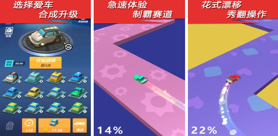 融合经营模拟与竞速对抗玩法,核心机制为赛车合成升级——通过组合不同部件生成更高阶载具,性能提升直观可见。漂移动作库包含多种进阶技巧,如双甩、钟摆、连续侧滑等,触发条件明确,反馈清晰,兼具观赏性与操作成就感。经济系统平衡,成长路径清晰,长期游玩动力充足。