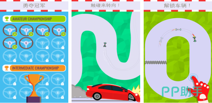 操作逻辑高度简化,仅需点击屏幕完成刹车与漂移指令,但动作判定精准,容错率合理。上帝视角确保视野开阔,便于规划走线,特别适合初学者建立空间感知与节奏意识。关卡设计强调极限控速与精准入弯,配合短平快的单局时长,形成强成瘾性的轻度竞速体验。