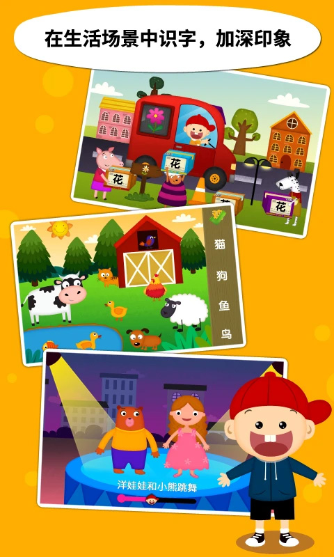 《叫叫识字大冒险》采用模块化短课时设计,单次学习时长控制在合理范围内,兼顾专注力发展特点。融合原创动画剧情与沉浸式游戏场景,如农场经营、侏罗纪探索等多元主题,增强学习代入感。所有汉字配音均由专业播音人员录制,发音标准清晰;同时支持角色扮演机制,孩子可切换不同动物视角,在具体语境中理解字义与用法。