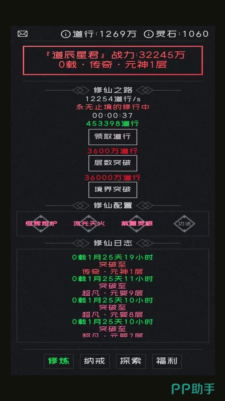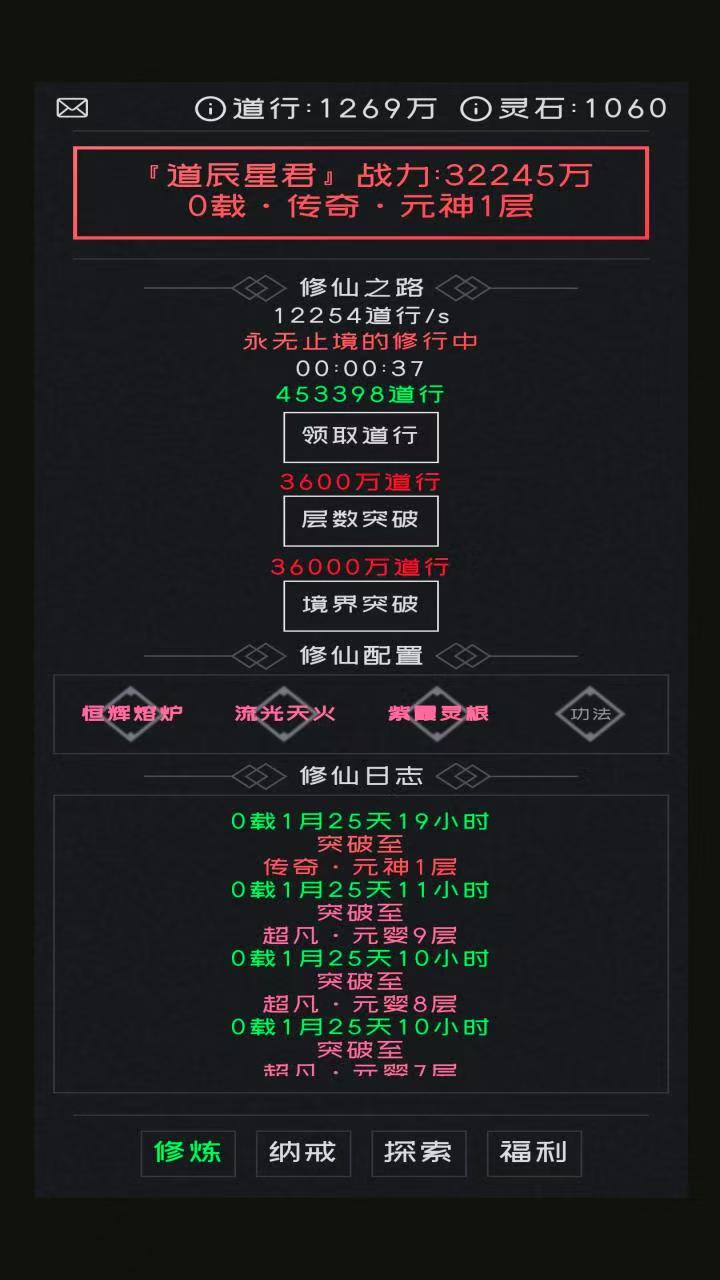 纯文字驱动的修真模拟游戏,从练气一层起步,通过挂机积累道行、突破境界,最终达成羽化登仙。玩家自定义道号,逐步解锁灵根资质、本命法宝、神通法术,并参与妖魔试炼。虽无复杂画面,但完整构建了筑基、金丹、元婴等修真体系,节奏舒缓,策略性强,适合喜欢沉浸式成长体验的玩家。