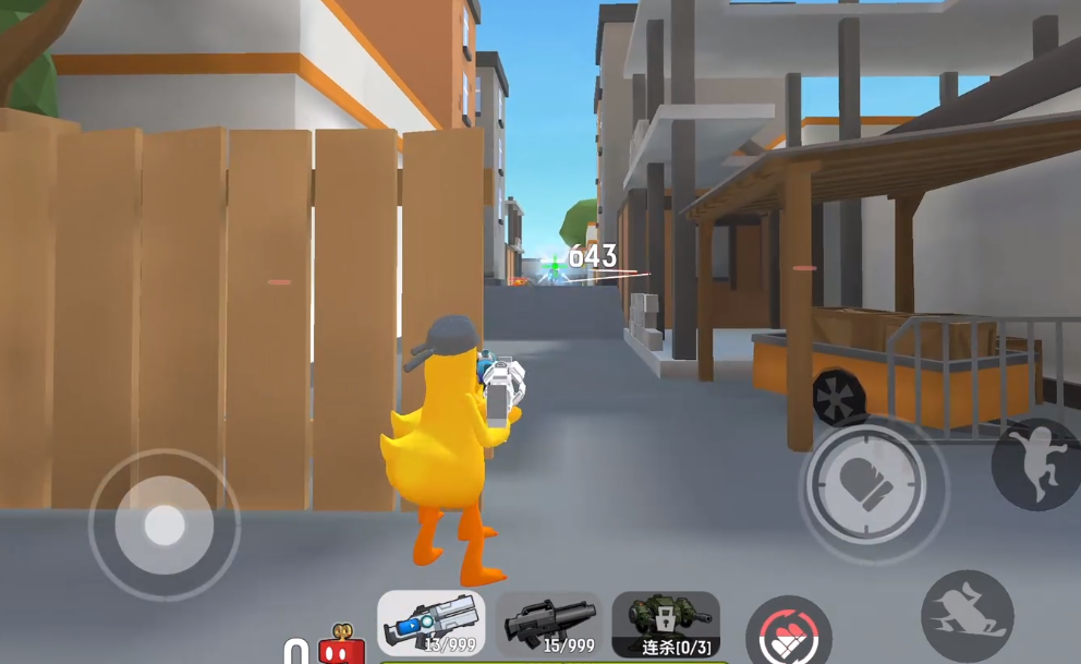 游戏中所有可操控角色均为风格萌趣的动物形象,共设4位初始角色,每位拥有专属技能与差异化属性,如机动型、防御型或支援型定位,玩家可根据战术偏好自由切换。移动方面,左侧虚拟摇杆控制方向,右侧屏幕滑动实现精准瞄准;射击机制采用进度条填充式触发,无需手动扣扳机,大幅简化操作逻辑。武器系统支持多档配置:开局默认携带首件选定武器,下方快捷栏实时显示已备选的其他枪械,点击即可瞬时切换。此外,跳跃与滑铲作为基础位移手段,既可用于规避火力,也可提升地图穿梭效率。