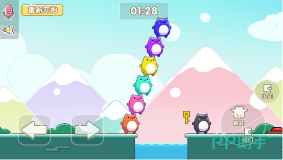 专为2至10人协作设计,每名玩家操控一只颜色各异的小猫角色。关卡挑战依赖团队配合:如叠罗汉获取高处钥匙、合力推动巨型球体、协同推倒障碍墙体等。操作简洁直观,物理反馈真实,强调沟通与分工,适合亲子共玩或朋友轻松开黑。