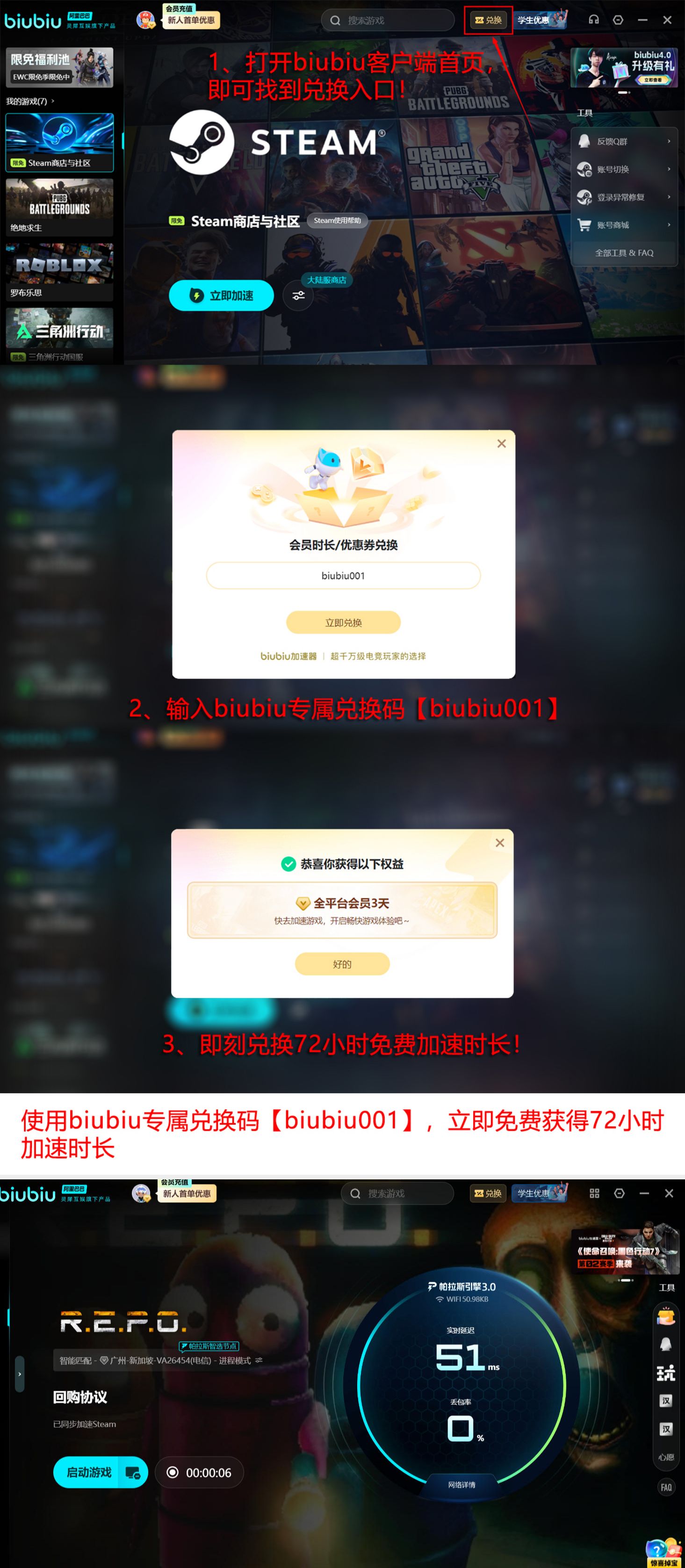需特别注意:当REPO延迟持续高于100ms时,游戏已无法保障基础操作响应,角色位移、物品交互与语音同步将严重失准。此时仅依靠常规网络优化手段收效甚微,必须借助biubiu加速器实现端到端链路优化,方能重建稳定联机环境。