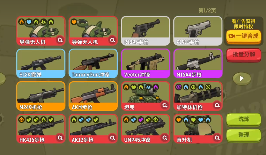 玩家在开局即可自由切换多种卡通化枪械,外观虽萌趣十足,但每把武器仍保留独立的射速、弹道与伤害特性。战斗以短局制为主,单局时长紧凑,强调反应与走位配合。除地面火力外,游戏内置“飞机支援系统”作为关键战术资源:该道具初始由系统免费赠送,使用时仅需点击道具栏图标即可激活;启用后,一架小型作战飞机将自动环绕角色飞行,并在敌方进入预设半径后发起精准轰炸。整个过程无需手动操控,全程智能判定目标并执行攻击,有效扩大压制范围,提升团战容错率。需注意,飞机持续时间为固定时限,倒计时结束后自动离场;后续获取需通过观看激励视频完成兑换。