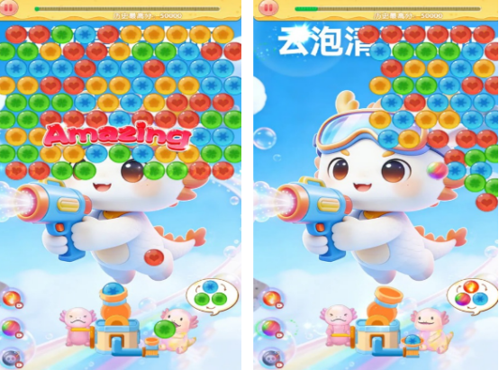 采用高清视觉设计,操作门槛低,主打经典三消机制。玩家通过精准发射同色泡泡,使三个及以上相同颜色泡泡相连即可触发消除。关卡目标明确——在限定时间内维持存活状态,达成通关条件。玩法逻辑清晰,节奏舒缓,适合碎片化时间放松体验。