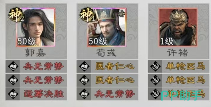 阵容运转的核心逻辑在于三层战术协同:荀彧凭借「王佐之才」技能,在战斗首回合即为许褚提供固定+10点武力与+5%攻击加成,显著提升其初始输出能力;四维属性的同步强化,进一步夯实许褚的伤害基础。郭嘉的「10胜10败」机制则是爆发支点——触发后不仅提高自身主动技能释放概率,更可额外发动两次「背水一绝」,该技能具备唯一目标锁定特性,精准打击敌方当前战力最高的单位,实现高效减员。