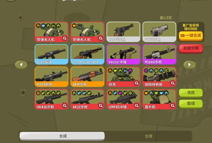 关于皮肤更换功能,目前游戏尚处于测试阶段,官方尚未开放角色或枪械的皮肤系统。当前主界面仅提供“角色图鉴”与“武器库”两个模块:图鉴用于查阅各动物角色的基础属性与技能说明;武器库则集中展示可使用的全部枪械类型,暂不支持外观修改。不过根据官方已公开的更新路线图,皮肤系统已明确列入后续版本开发计划,具体上线时间需等待正式公告。