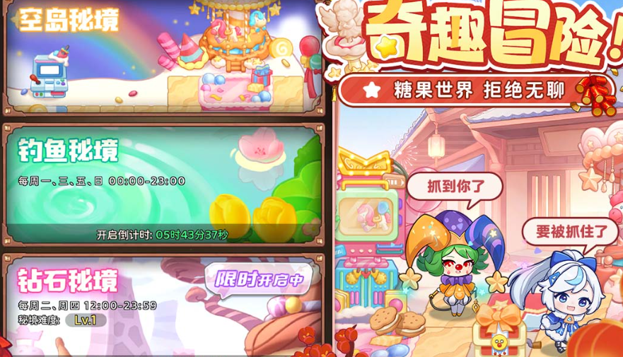 游戏内置“大冒险”副本模块,涵盖空岛秘境、钓鱼秘境、钻石秘境三大主题场景,支持玩家在低时间投入前提下高效获取战斗资源;关卡节奏张弛有度,兼顾策略性与碎片化体验,适配现代用户多元日程安排。