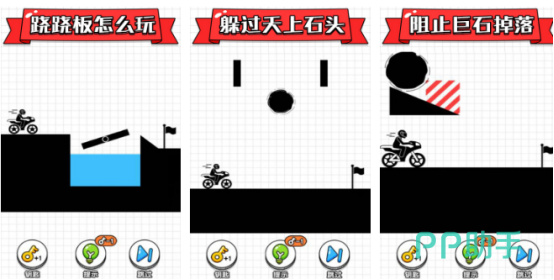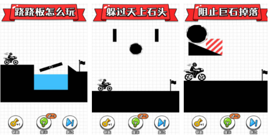 核心机制以“手绘路径”驱动,玩家通过手指在屏幕划出连续轨迹,引导摩托车沿设定路线安全抵达终点。关卡设计强调逻辑推演与空间感知,包含可升降巨岩、断崖缺口、旋转障碍等动态机关,要求玩家在毫秒级响应中完成精准规划,兼顾趣味性与解谜深度。