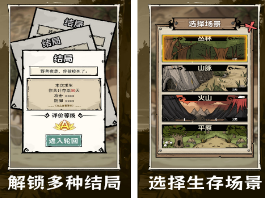 融合Roguelike机制与卡牌构筑玩法的创新型生存手游。每局开局通过抽卡决定初始天赋、道具与环境参数(如温度、降雨频率、怪物密度),岛屿地形包含平原、针叶林、熔岩带、毒瘴沼泽、冰川裂隙等六类可选生态。玩家需在有限行动点内完成资源采集、建筑搭建、战斗应对与结局触发,单局时长约15–40分钟,共设12种差异显著的通关结局,重玩价值极高。