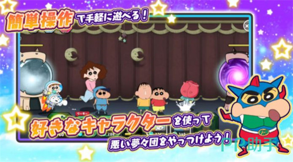 构建包含野原家住宅、春日部防卫队据点、社区超市在内的3D可交互地图,支持自由探索与动态跑酷。收集巧克力、糖果等特色道具可激活力量增幅与技能解锁效果。与NPC持续互动可提升亲密度,用于触发隐藏剧情、获取限定奖励及拓展任务图谱。