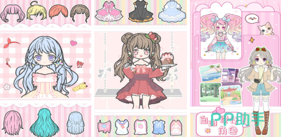 提供高度自由的造型编辑功能:从蓬松卷发、高马尾到水晶发箍、蝴蝶结发带,发型与发饰库丰富可选;服饰体系覆盖萝莉公主装、时尚少女装等多主题套装,每套均经过精细建模,确保整体视觉协调性与角色气质统一。