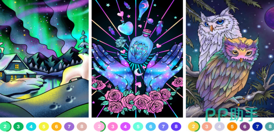专注数字填色垂直体验,收录超千幅原创线稿,按题材划分为国风仕女、动漫角色、自然风景、几何抽象等十余个分类。每日更新限定图集,支持离线下载与进度云同步;操作逻辑极简——点击色块即自动填充对应编号区域,响应迅速,适配单手操作习惯。