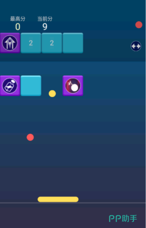 操作极简的物理弹射类单机游戏,老少皆宜。屏幕底部为可左右滑动的接球木板,中央区域有带数字标识的下落方块及弹跳小球。玩家需预判轨迹、实时调整木板位置,以弹射方式精准命中目标方块完成消除,节奏明快且具备显著解压效果。