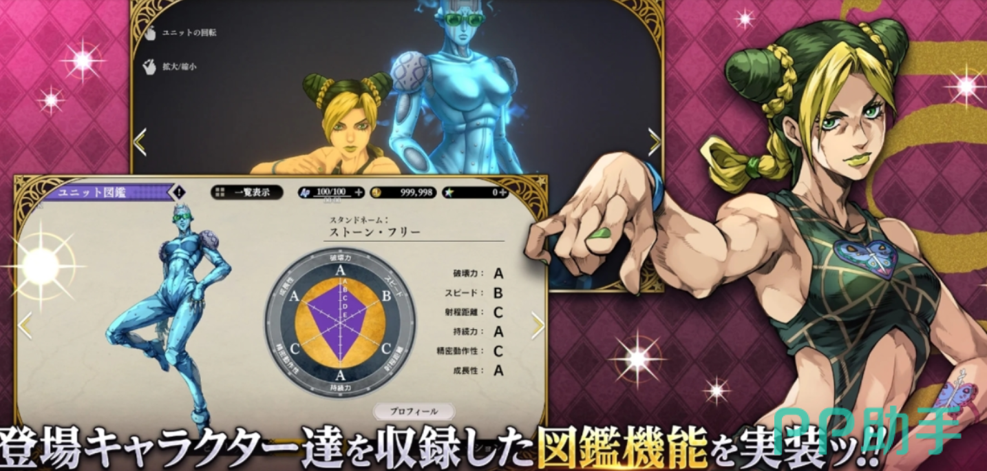 采用Unity引擎构建的3D回合制作品,替身能力严格遵循原作设定参数,如「白金之星」时间暂停精度、「黄金体验」物质重构范围等均按官方数据建模。战斗界面支持自由旋转视角,便于观察替身动作轨迹与空间关系。