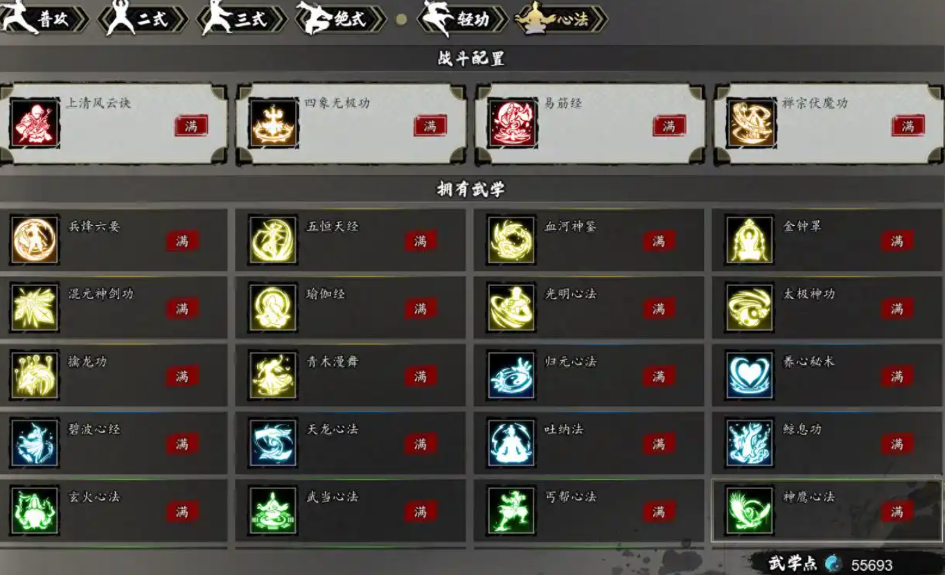 易筋经需前往少林寺场景,向圆悟禅师完成对话后获取。该心法具备双重机制:一是清除当前所有负面状态,二是每回合固定恢复15点气息值。此特性使其成为应对多段控制链或持续减益环境的首选生存向心法。