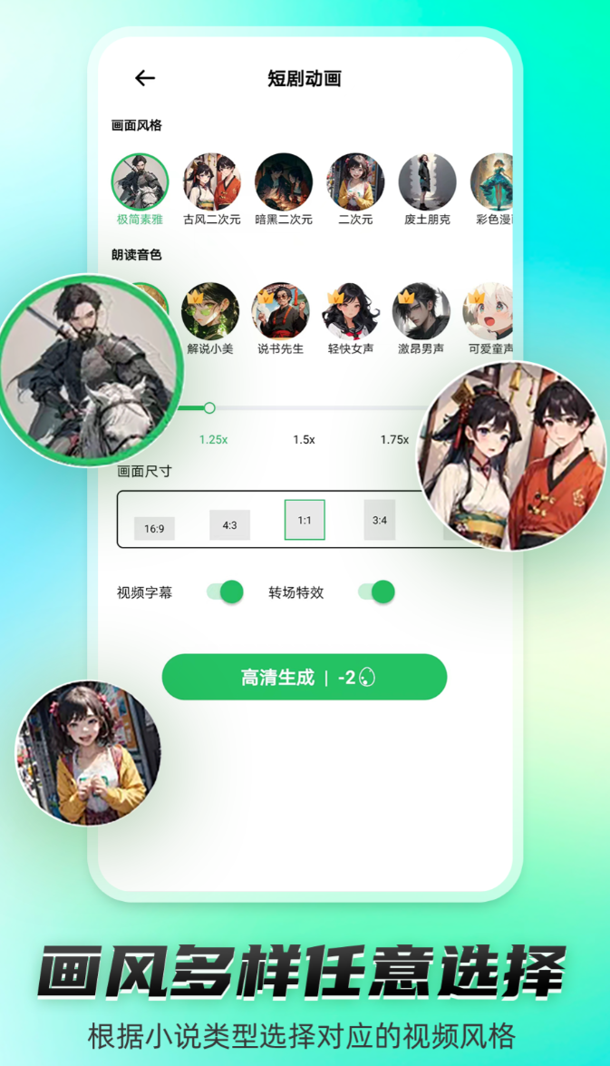 专注文字驱动型短视频生成,适用于知识类、资讯类、营销类内容快速包装。输入原始文案,系统自动匹配翻页、快闪、弹入、缩放等动态模板,风格贴合抖音、快手等平台主流审美。内置上百套手绘风、极简风、科技感矢量模板,支持图标、边框、蒙版等装饰元素自由叠加。语音合成引擎覆盖多种性别音色与地域方言,支持网页文章链接解析,可一键提取正文并生成带字幕、配乐、画面节奏统一的解说视频。