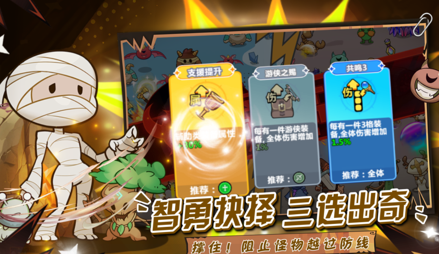这是一款融合横版动作闯关与塔防机制的快节奏冒险游戏,创新引入Roguelike元素。玩家通过实时战斗积累资源,随机抽取技能卡牌并组合搭配,形成个性化成长路径。UI动效流畅、技能表现张力十足,整体设计注重操作反馈与策略深度,零压力养成体系兼顾长期留存与新手友好度。