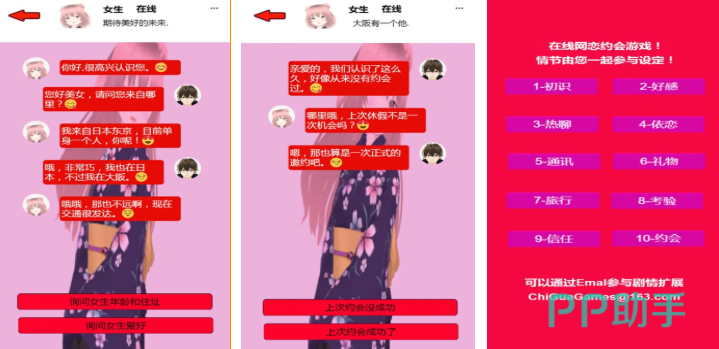 文字冒险恋爱模拟游戏,采用分支树状叙事结构。每次对话提供3-5个回应选项,影响角色信任值、羞涩值、依赖值三维属性。约会地点涵盖咖啡馆、书店、天台等12类场景,不同组合触发专属事件,累计达成50+成就可解锁幕后制作花絮。
