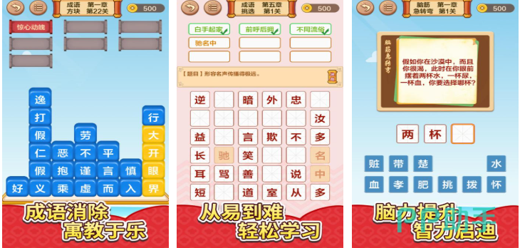 以中华成语文化为核心设计的互动式学习工具,采用点触式操作,覆盖小学语文课标要求的常用成语库。每关设置接龙逻辑链、释义提示、错字纠正等教学模块,关卡难度梯度清晰,兼顾趣味性与知识密度,帮助孩子在轻松氛围中积累词汇量、理解语境用法。