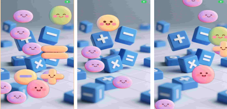 创新引入三维动态符号系统,将“+−×÷=”等运算符具象为可拖拽、组合、碰撞的立体元素。玩家需在限定时间内完成符号匹配与算式构建,同步训练观察力、反应力与基础代数思维。难度曲线平缓,支持自定义题型范围(如仅加减、含括号等),满足差异化学习需求。