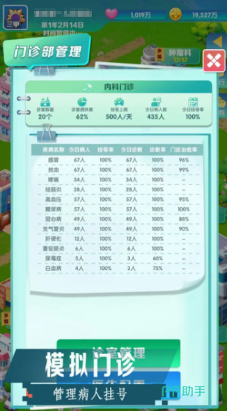 以医院战略管理为核心玩法,玩家需统筹人力资源配置、科室功能布局与资金流转节奏。典型场景包括:处理突发医患沟通事件、平衡医护人员薪酬诉求、优化急诊科响应时效、规划手术室排程密度等。各科室具备独立运作逻辑——如检验科影响诊断速度,后勤部制约物资补给效率,决策链路环环相扣。