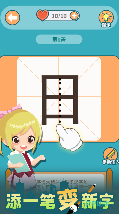 关卡设计融合图形化引导与任务驱动机制,例如“将‘未’字添一笔组成两个常用字”“在限定区域内完成笔画连接”等创新形式。内嵌千余道原创题目,涵盖小学语文课标字表、HSK汉语水平考试高频字及传统文化常见用字。每成功生成新字,系统即时显示标准读音、部首归属与简要释义,实现“玩中学、学中记”的闭环学习路径。