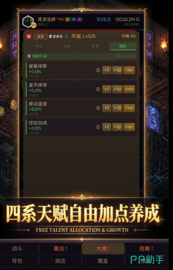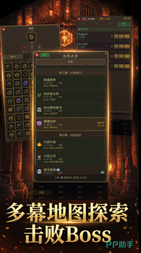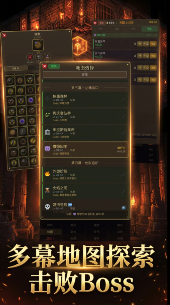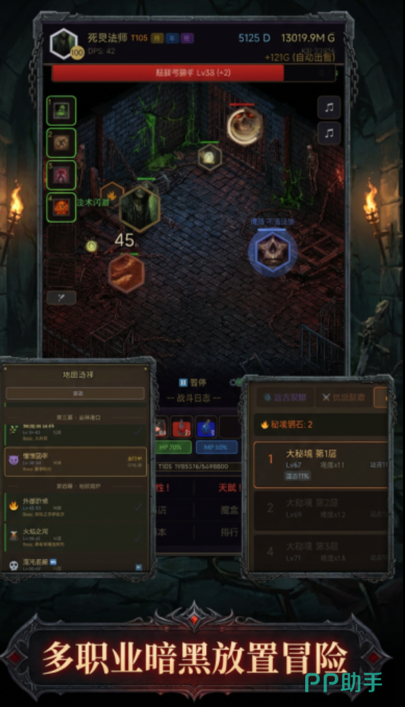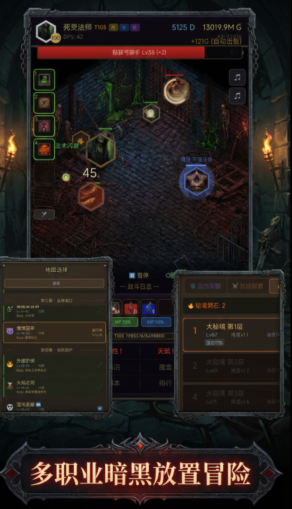 在游戏中,玩家将置身于一个危机四伏的异界大陆,肩负对抗混沌侵蚀、守护秩序存续的使命。除保留暗黑系标志性的装备词条系统、随机词缀、职业分支成长路径外,本作创新引入全自动挂机战斗框架——角色在离线状态下仍可持续获取经验、金币与稀有材料,大幅降低操作门槛,同时保障核心养成深度。角色培养维度涵盖武器/防具/饰品多阶套装搭配、主动/被动技能树解锁、天赋节点自由加点及战术阵型编组,策略纵深显著提升,支持高度个性化的战力构筑方案。