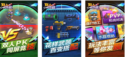 涵盖射击、塔防、生存闯关等多元玩法的合家欢式双人竞技平台。支持本地同屏与在线联机两种模式,提供僵尸围城、枪战擂台、基地共建等8大常驻玩法模块。角色技能可自由组合,如“治疗+掩护”“爆破+侦查”,强调策略互补而非单纯操作比拼,契合情侣间自然分工协作需求。
