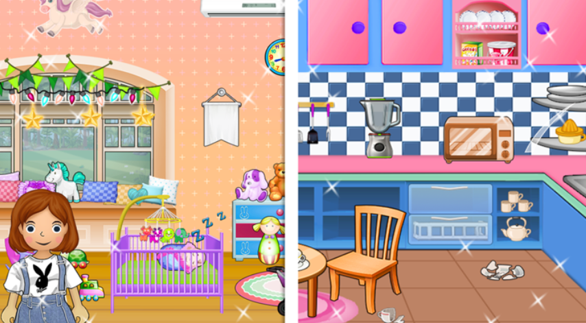 以多层立体建筑为舞台,构建包含卧室、厨房、教室、游乐场等功能区域的家庭生活模拟系统。每个空间均设独立互动事件链,支持多人角色协同操作。任务设计强调生活逻辑闭环(如做饭→摆桌→用餐→清洁),辅以轻度成就系统,潜移默化培养儿童秩序感与责任感。