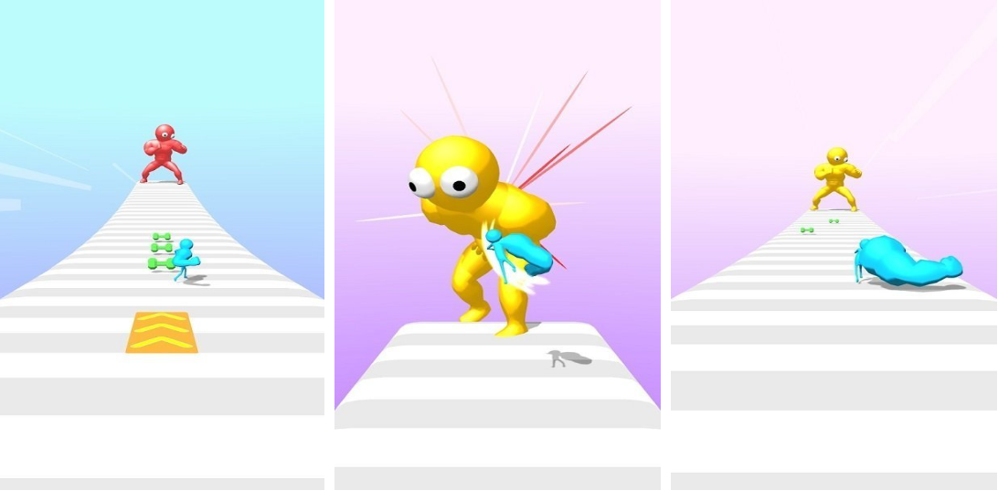 本作创新融合跑酷与肌肉成长系统:角色在高速移动中收集强化道具,逐步升级左手力量值,最终以蓄力重拳击溃终点守关BOSS。角色采用黏土动画风格建模,视觉辨识度高;BOSS设计兼具压迫感与夸张幽默感,整体节奏紧凑,挑战性强。