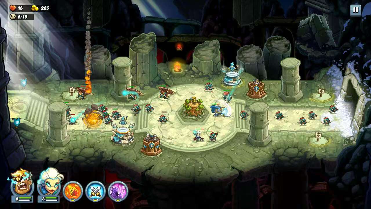 策略维度迎来重大革新:首次引入“双英雄协同作战”系统。每个关卡可同时部署两名英雄,其主动技能与被动效果可与防御塔产生实时联动——例如特定英雄技能可强化范围内塔的攻击频率或触发额外范围伤害。所有防御塔均配备独立技能树,支持多路线成长分支。养成体系覆盖防御塔、英雄、法术三大模块,三者成长路径相互独立又彼此支撑,允许玩家构建高度个性化的战术流派。老玩家可在剧情与场景细节中发现大量系列前作伏笔,而新玩家亦能凭借灵活的布阵逻辑与动态应变机制,逐步掌握塔防策略的核心要义。
