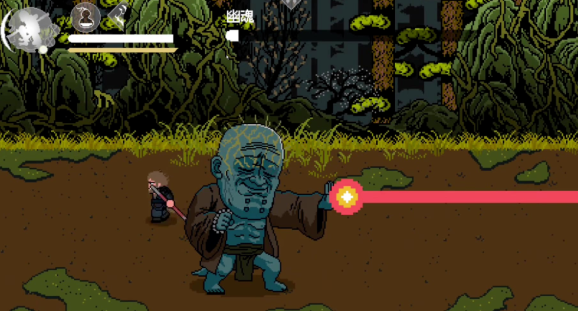 移动端像素化魂系动作RPG,还原黑神话:悟空核心关卡结构与Boss战机制。共设8大章节、36个主线关卡及12个隐藏试炼场。难度曲线严格遵循“学习-适应-突破”三阶段模型,死亡惩罚机制支持灵魂回溯与记忆点存档,兼顾硬核与可玩性平衡。