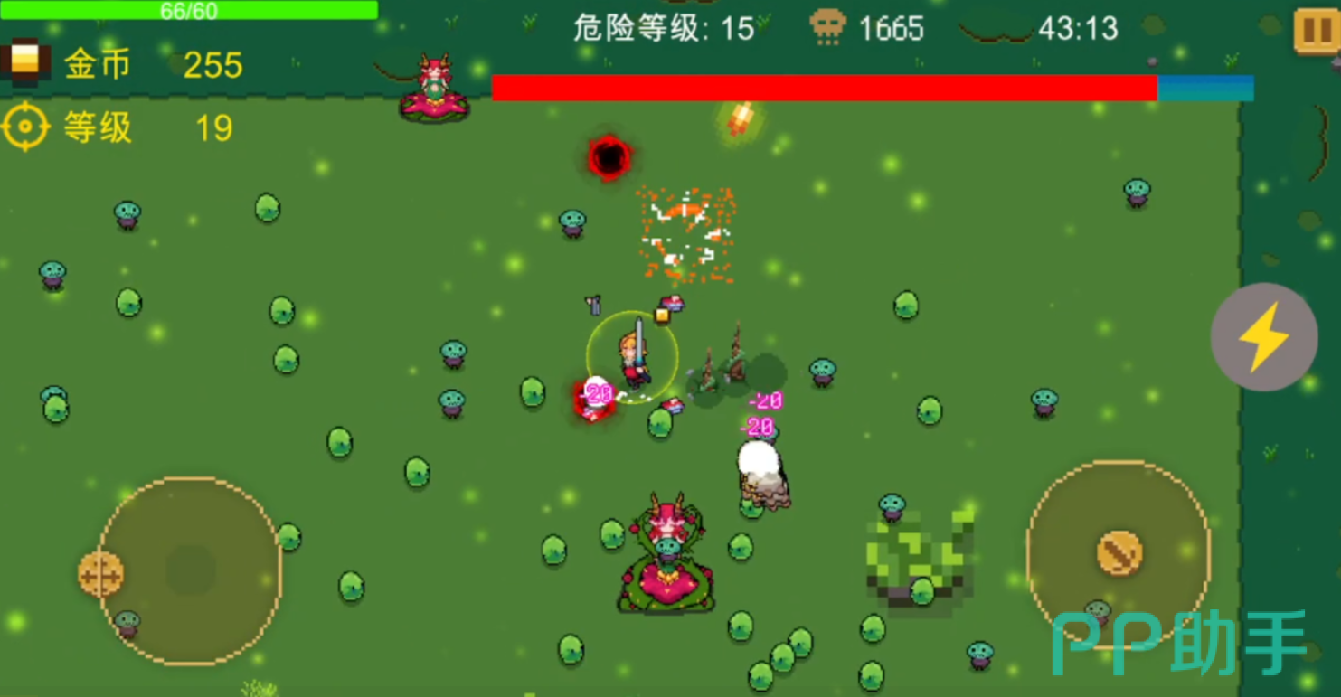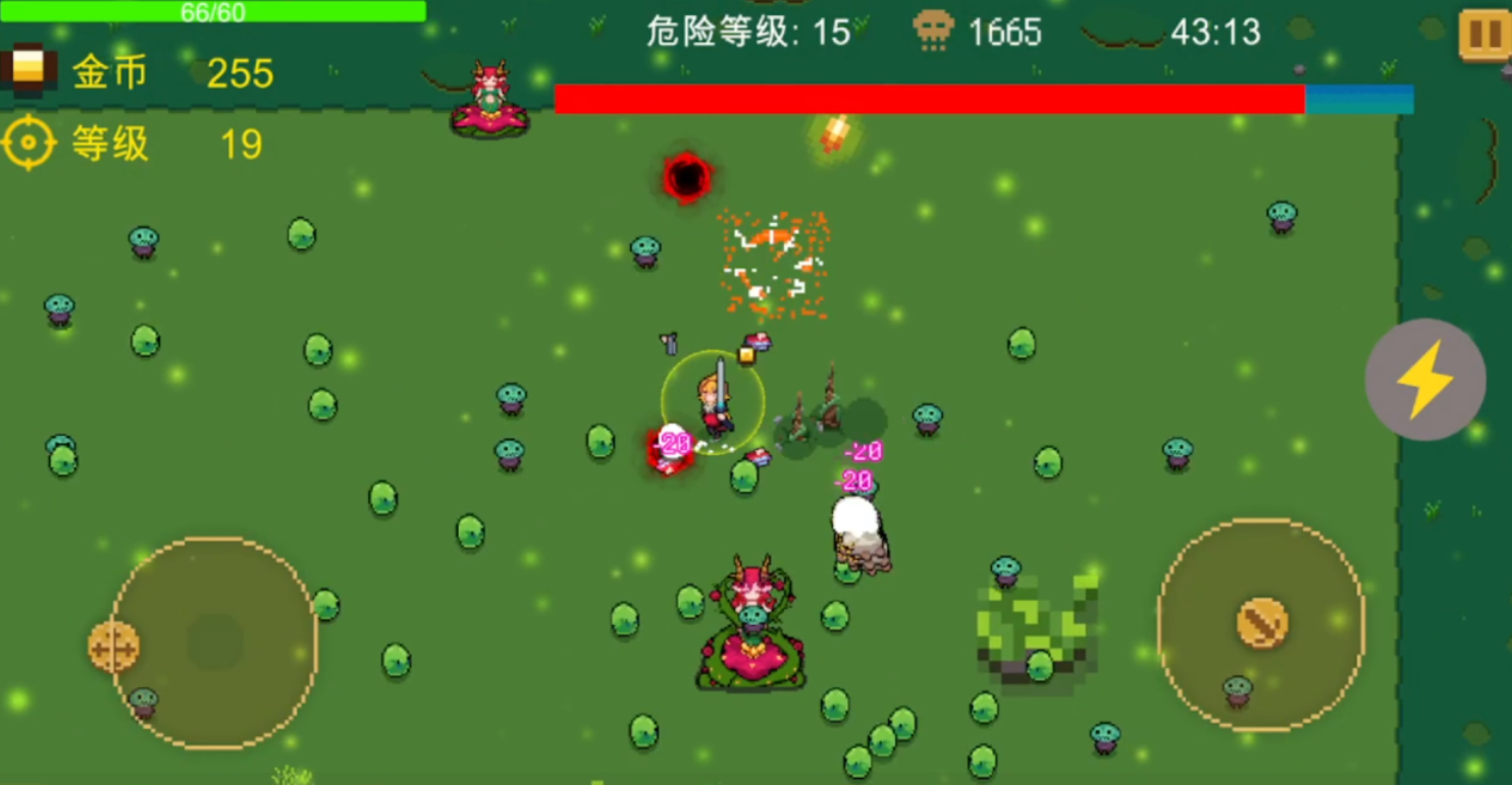Roguelike+割草融合玩法,初始提供3职业分支(战士/法师/游侠),每局随机生成技能树节点与被动增益。战斗帧率稳定60FPS,满屏敌人同屏数达200+,技能触发伴随粒子轨迹追踪与屏幕震动反馈,强化动作打击感。