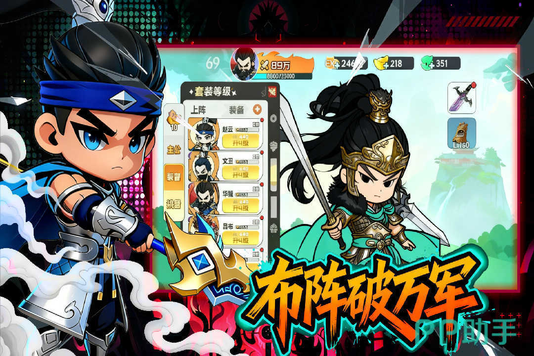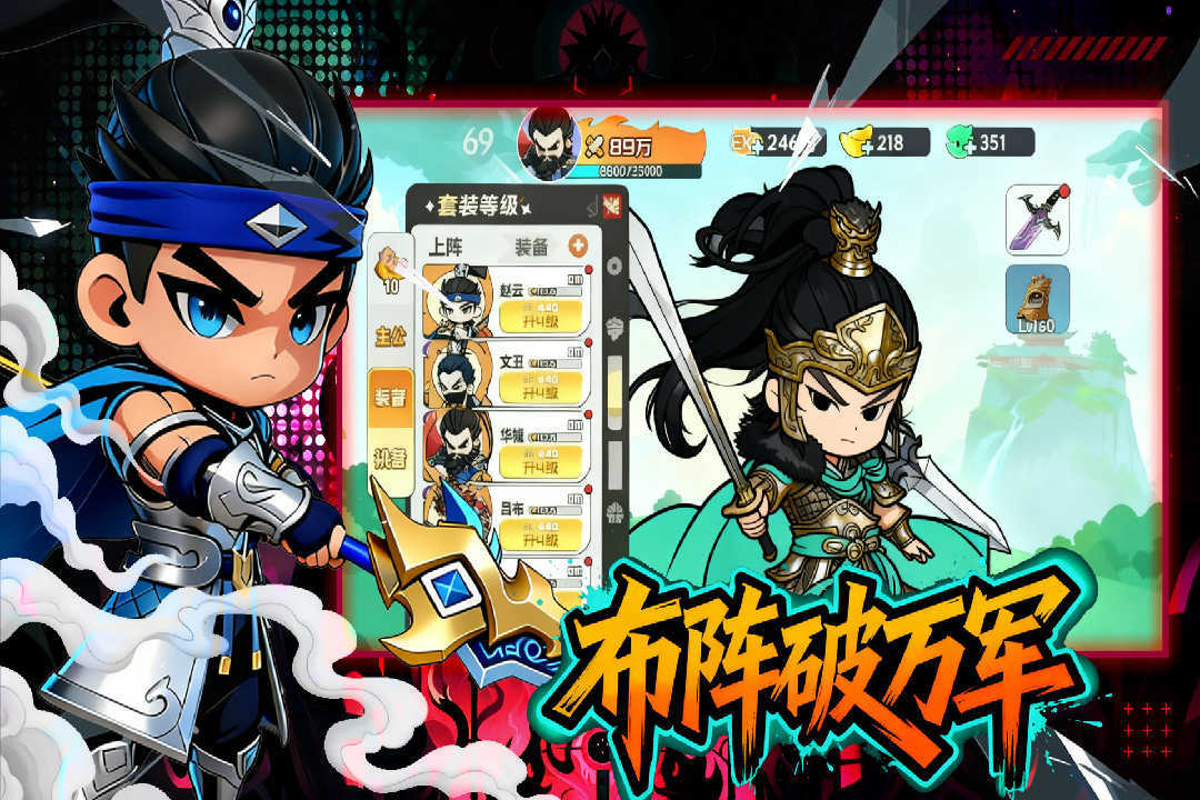 本作对三国题材进行创新演绎,将上百位历史名将悉数转化为高辨识度Q版形象。例如关羽扎起俏皮小辫、吕布手持烧鸡奔赴战场,在保留人物神韵的同时营造出鲜明反差萌效果,拉近玩家与角色的情感距离。武将养成体系丰富务实,涵盖招募获取、星级进阶、等级提升、装备强化等多个维度,每一步成长均实时反馈至战力数值变化,带来直观可见的成长反馈。