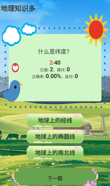 系统化地理学习工具,《地理知识多》按难度划分为简单、中等、困难三级题库,涵盖国家首都、地形特征、气候类型、人口分布、资源禀赋等核心考点。错题自动归档并生成复习计划,支持反复强化记忆,贴合中学地理课程标准,助力知识巩固与应试准备。