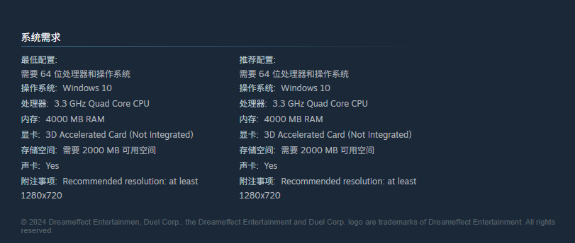 从底层架构看,《DuelCorp》虽采用HD2D美术管线,但所有场景均基于实时3D渲染生成,对GPU的几何处理与光栅化能力存在明确要求。硬件方面,最低配置为:Intel Core i3及以上处理器(主频≥3.3GHz),支持DirectX 11的独立显卡(如GTX 750 Ti或同等性能型号),4GB运行内存,以及不低于2GB的可用存储空间。需注意的是,RTX 960或同级显卡为推荐配置——这并非冗余建议,而是因游戏中大量动态光影、粒子特效及多层景深镜头会显著提升GPU负载,高阶显卡可保障60帧稳定输出与技能释放零延迟反馈。