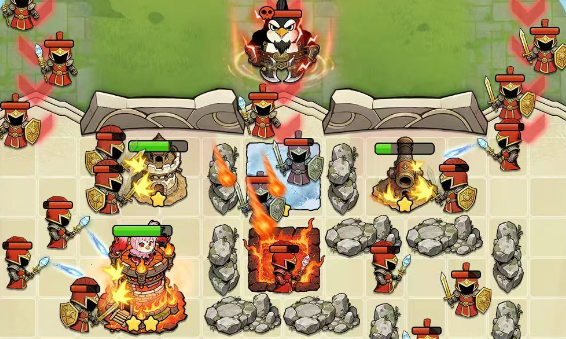 独具特色的单人塔防游戏,激烈的游戏过程,也不需要其他玩家的参与,一个人就可以在塔防之战中运筹帷幄,合理的选择英雄、防御塔、士兵的类型。地图场景之中石头的摆放位置以及防御塔的位置之间形成了一个很好的联合效果,在守家的时候可以极大的降低敌人攻打的速度,使我方处于更多的优势。等级提升时还会有系统推荐的武器和新技能,但是有些武器是需要金币解锁使用的。