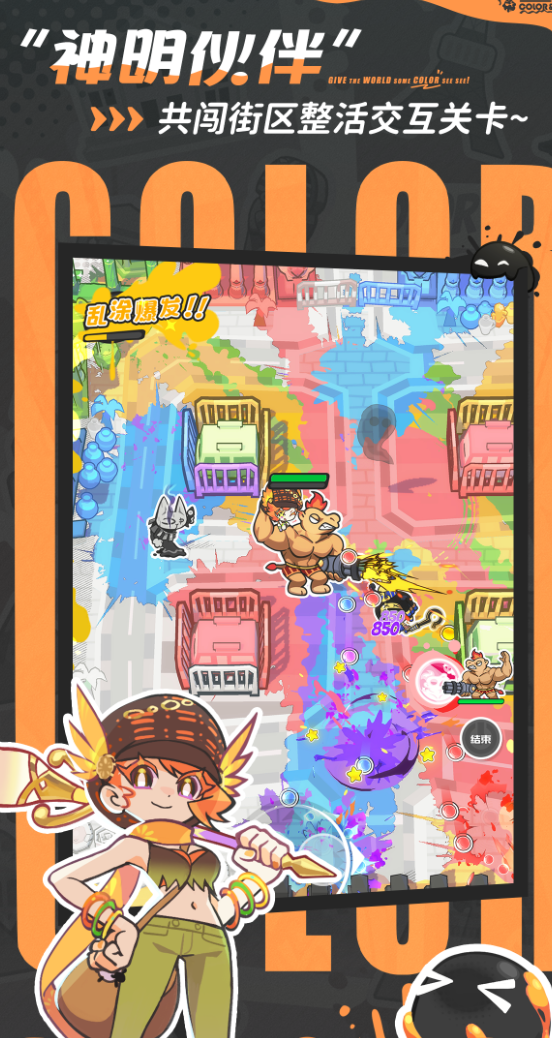 乱涂彩世界的配饰系统主要是由染色、属性克制这两个主要部分组成的。每一个敌人都有颜色敏感点,玩家给神明角色上色能准确找到它的属性缺陷,还会产生颜色回复的效果,保证战斗中神明角色的能量一直保持稳定的水平。搭配各种类型的配饰装备,可以很好地提高各个能力的使用效果,既可以提高生存属性又可以大大提高输出速度。