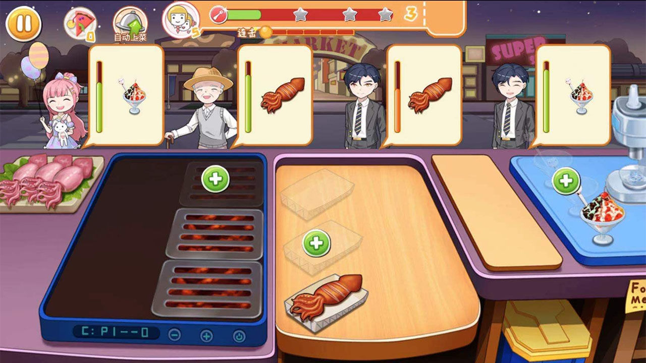《老六大排档》这部作品将夜市文化,进行了出类拔萃的模拟复现,玩家们将在夜晚来开启各种趣味纷呈的美食挑战,煎饺,炸串、炒面等等。都需要大家运用与之对应的设备和食材进行制作,游戏设计的夜市场景和食谱,可以跟随着玩家大排档的人气值陆续进行解锁。