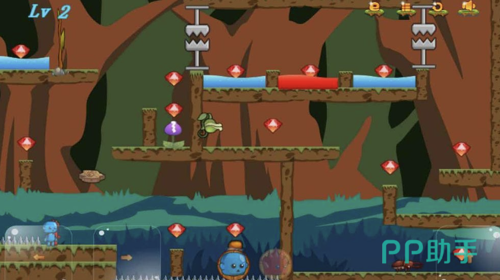 熟悉的双人协作机制,每一步都需要玩家紧密配合,一个角色失败关卡就会重置,很考验默契度。关卡进行了扩充,增加了更多危险机制,要小心落石、火焰、毒刺等各种攻击。操作简单好上手,只需要进行前进和跳跃,就能躲过绝大多数障碍物,熟练后闯关很轻松。