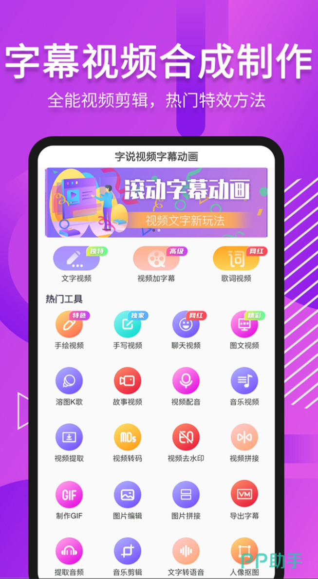 把文字做成动画,是这款工具的核心思路,语音识别之后,内容不只是静态字幕,而是能直接变成动态画面。旋转、滚动、渐变、3D环绕这些样式都有,配上动态背景和手绘特效,文字本身就成了画面的一部分。卡拉OK场景做了专门优化,歌词导入后,自动生成逐字跳动效果,节奏感很强。卡点模板也内置了不少,短视频平台上流行的玩法基本都能覆盖。