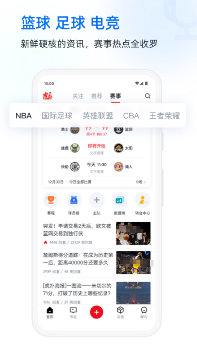 从篮球论坛起步,现在已经是覆盖多个体育项目的综合社区,NBA、CBA、中超、英超的资讯和直播都有。社区氛围是最有意思的地方,JR们发帖风格真实,转会分析、战术讨论、赛后吐槽都有,优质内容会被置顶,形成了一套自己的内容生态。直播页面聚合了评论和热点话题,看球的同时能看到大家的实时反应,互动感很强。识货板块延伸了运动装备的购买渠道,体育迷在这里能找到不少实用内容,用户黏性在同类平台里算高的。