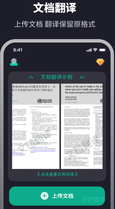 第三款软件的主要功能是以批处理文件的速度进行文件翻译。支持多种格式的上传,如 PDF, Word, PPT等,百页文件一分钟即可转换,并保持原始的版式和图形。在翻译的时候可以随时暂停,预览的结果会在页面上出现,然后在确定后统一输出。中英文对照视图,使原文和译文并列,便于检查。