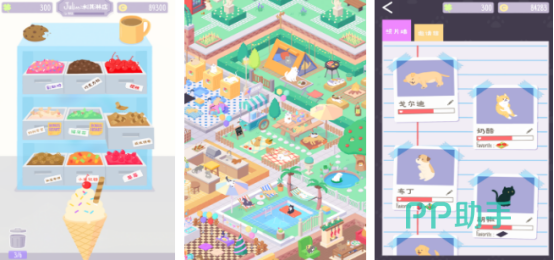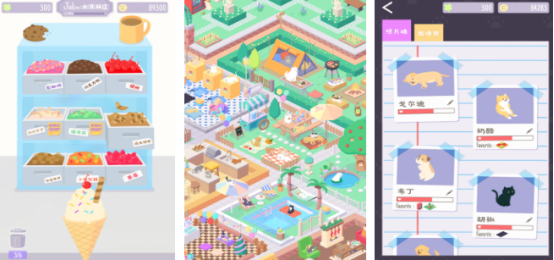 这款休闲游戏拥有着非常治愈的特色风格,融入了模拟经营以及休闲收集等多样化特色玩法,玩家化身成为冰淇淋店店主,主要的任务便是根据顾客猫猫狗狗的点单制作相应的冰淇淋进行售卖,众多装饰搭配和材料都能够自由搭配,打造出不同的创意题材和特色新品。