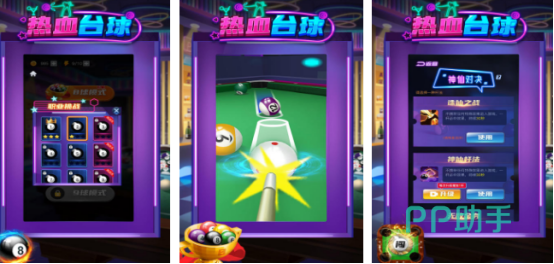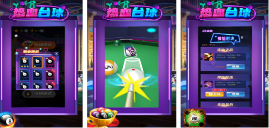 全场景都采用沉浸式3d引擎,高度还原物理细节,球体在碰撞时的具体效果都与现实比较相似,将虚拟球桌投射到现实场景当中,另外也提供第一人称视角操作反馈,支持多平台数据互通,确保跨平台连接也能够享受流畅又稳定的效果。经典的电竞模式,复刻八球、九球等规则从休闲到专业,不同竞技需求都能满足。