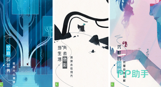 以视觉艺术为特色题材的冒险解密游戏,唯美的水彩画风,每帧画面都像是艺术品一般无比精美,色彩也随着剧情逐渐过渡,从红绿到黄等不同的颜色,直接象征出主角的情感演变。游戏采用无文字叙事模式,应靠着视觉以及听觉来传递感情,让众多玩家跨越语言障碍,并获得独特沉浸体验。